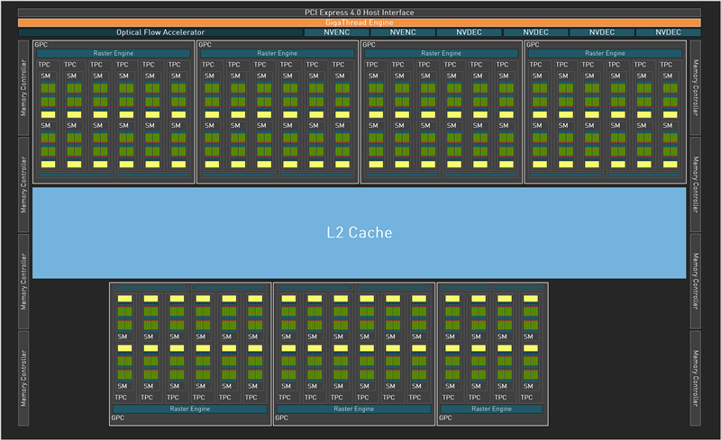 另外,它还有320个第四代Tensor张量核心、80个第三代RT光追核心、320个纹理单元、112个ROP单元以及64MB二级缓存。