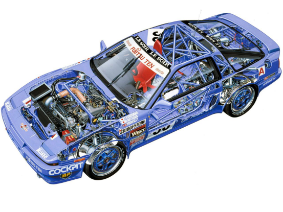 图:同样使用1JZ-GTE引擎,但R版拥有更大的中冷器,Bilstein避震机配Tein弹簧、Torsen式机械差速器,经过一系列的减重措施,R版是第三代中最轻、最快的型号。