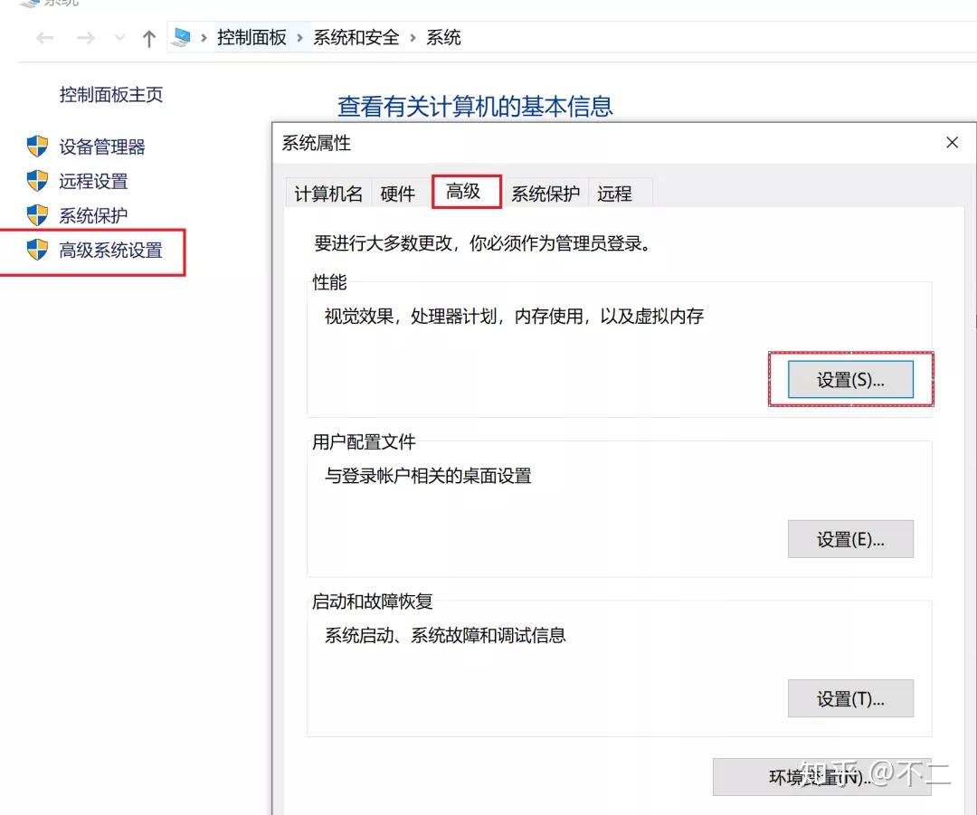 我的电脑 右键属性,然后高级系统设置 -> 系统属性 -> 高级 -> 设置(性能)