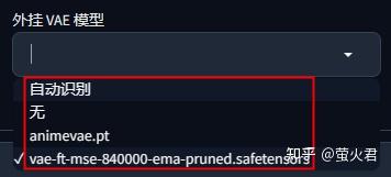 在秋叶整合包中提供了四个选项,如下图所示,我一般都选“自动识别”,除了 vae-ft-mse-840000-ema 比较通用,animevae 是专门优化二次元图片的。一般这两个VAE模型就够了。