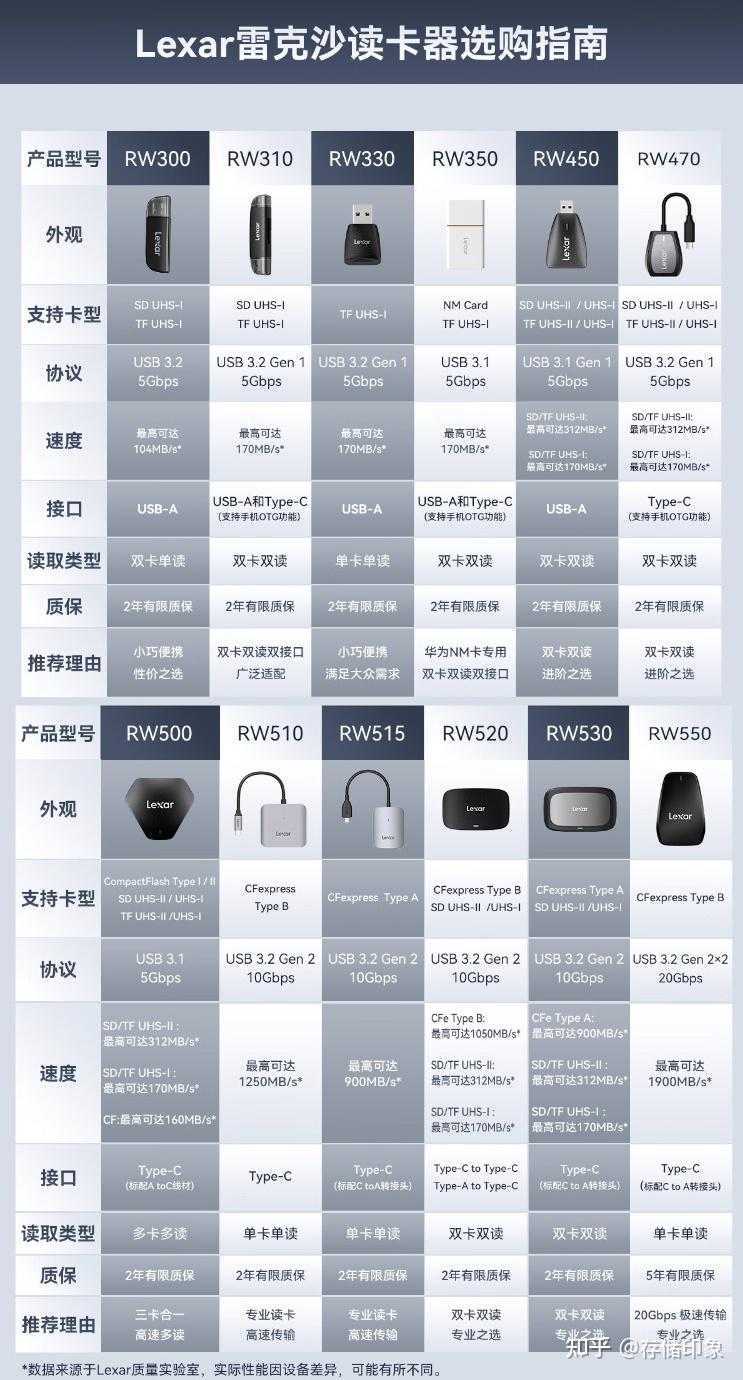 读卡器的接口以前有USB 2.0,如今基本上是USB 3.2系列(含物理接口Type-C)了。接口不同,读取速度也将有所不同。而存储卡随着容量越做越大,总线模式衍生出UHS-I、UHS-II等,对应的传输速度也越来越快。读卡器与存储卡的配合,需要遵循“好马配好鞍”的原则。