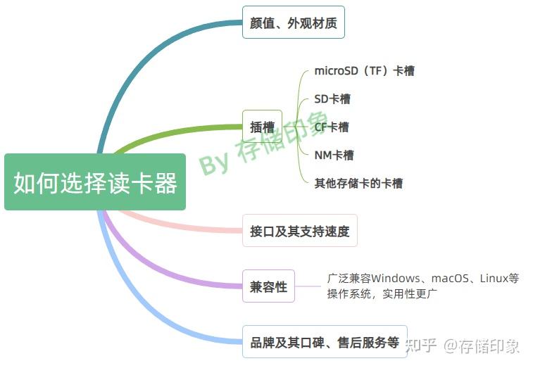 在了解了读卡器的相关内容之后,选择读卡器就不会那么盲目了,我用思维导图的形式把如何选择读卡器给大家揭秘,看图容易引起思考与共鸣,做好思维导图列出来的几点,基本上可以帮助大家挑选出一款适合自己的不错的读卡器了。