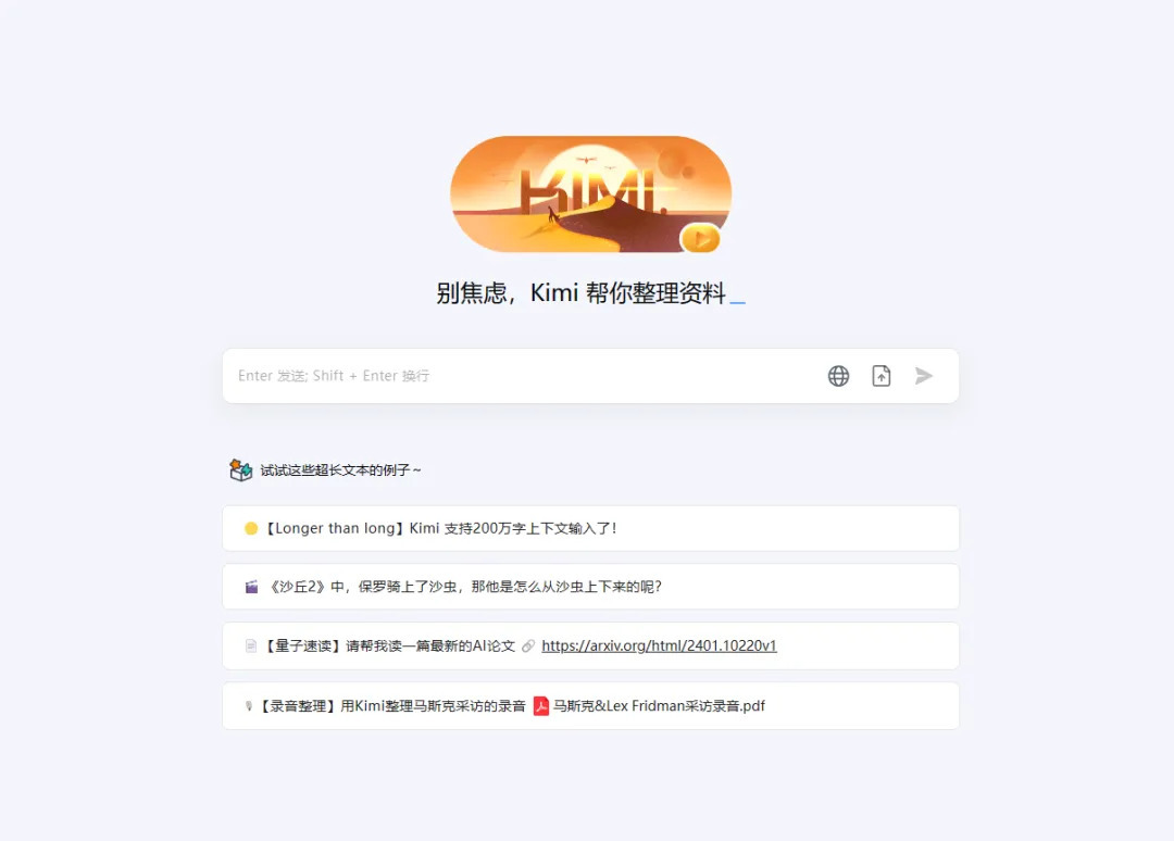 2023年10月9日,北京月之暗面科技有限公司(Moonshot AI)宣布在“长文本”领域实现了突破,推出首个支持输入20万汉字的智能助手产品Kimi Chat。 [1] [10]10月10日,开放内测。 [12]11月16日,Kimi Chat面向全社会开放服务。 [13]