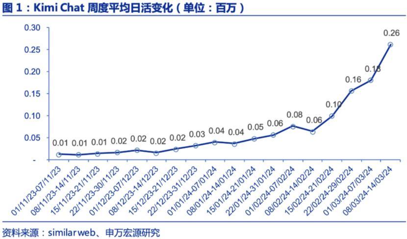2024年3月18日,月之暗面宣布Kimi智能助手启动200万字无损上下文内测。 [1]截至3月19日,Kimi智能助手累计下载量突破50万次大关,过去一周日均下载量接近4万次,周环比提升4倍。 [3]3月20日,AI应用主线爆发,下午,“Kimi概念股暴涨”等相关话题冲上微博热搜。 [1]