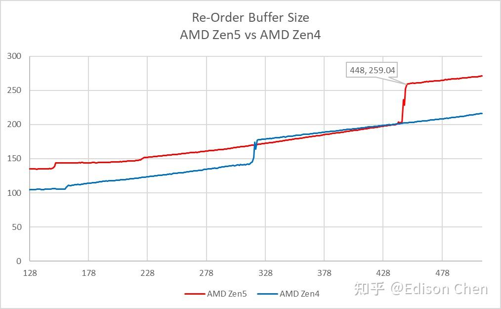 ROB 实测值是 448,和AMD 提供的信息一致;