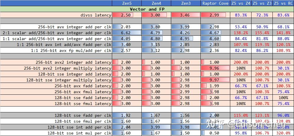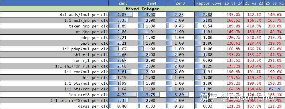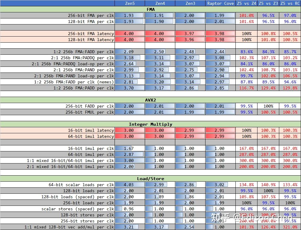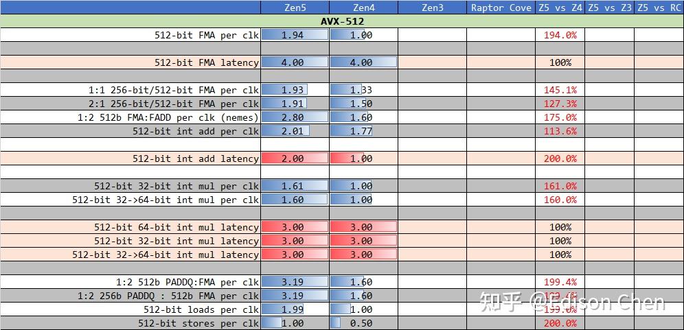 512-bit 整数 add 指令吞吐比 Zen4 提升了 13%。