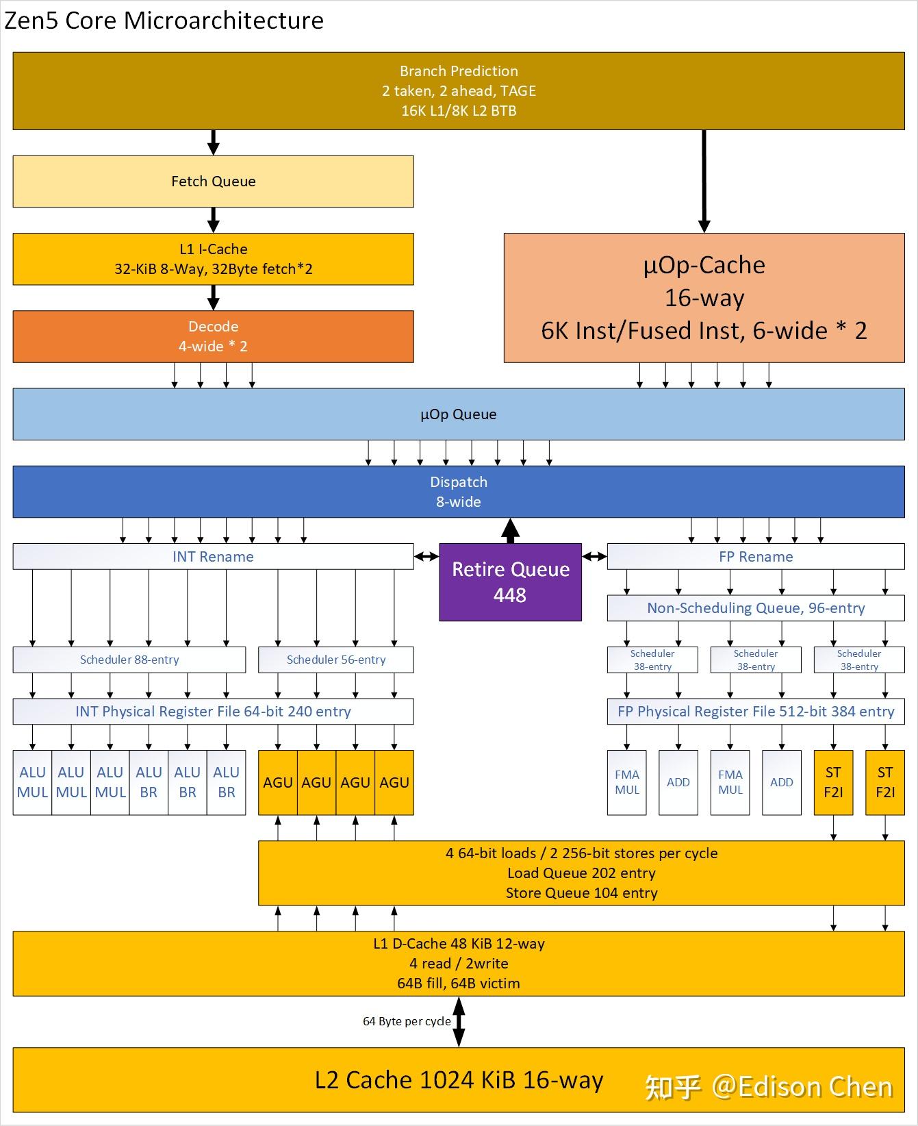 从这点可以认证 Zen5 和 Zen4 在内部结构上存在巨大差别。