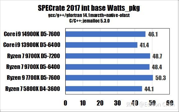 在 SPECspeedINT_2017(整数重载任务)测试方面,Ryzen 7 9700X 比 Ryzen 7 7700X 快大约 8%。