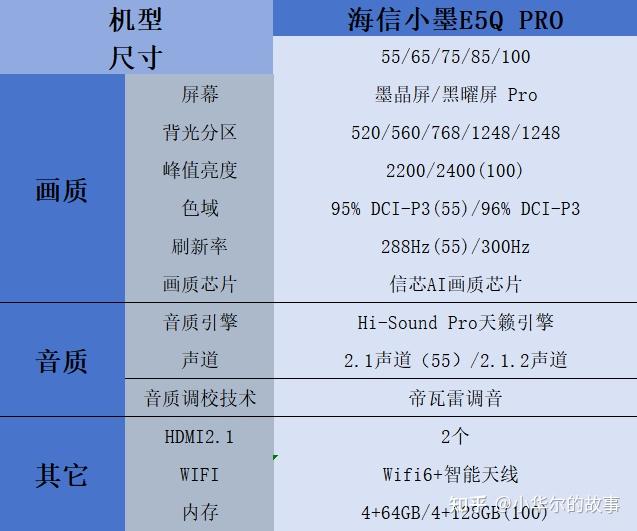 更加值得一提的是,海信小墨E5Q PRO拥有55寸、65寸、75寸、85寸和100寸,能够满足你对尺寸的要求。