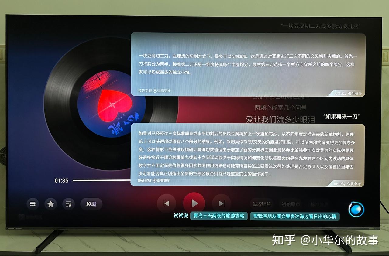 不仅如此,作为行业首批接入DeepSeek的电视机品牌,小墨E5Q PRO无疑也是搭载DeepSeek了,配合依托星海大模型的多个AI智能体(一共18个AI智能体),平时想要听歌、看天气预报啥的,只要动动嘴就能帮你解决;同时,平时想做一下明天的规划、写文章等,小墨E5Q PRO都能帮你做到,而且内容还能根据你的要求的变化而变化。