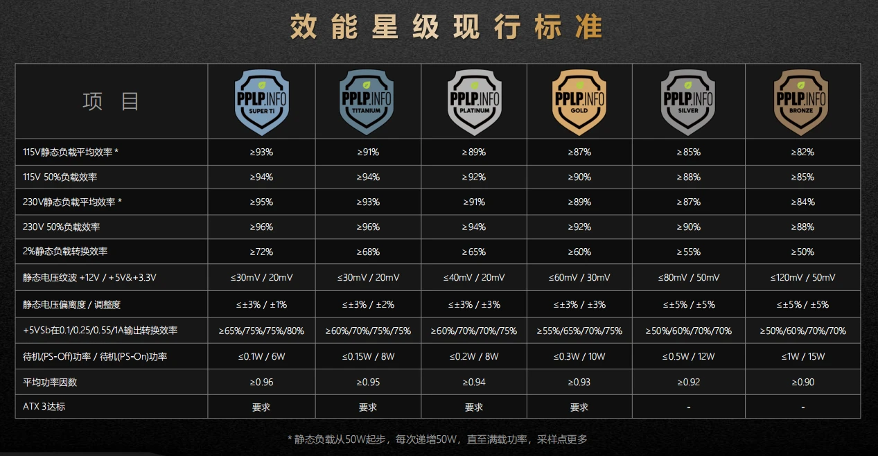 这个公司,只对收到手的电源进行测试,能过相应标准的,就会给相应的等级。