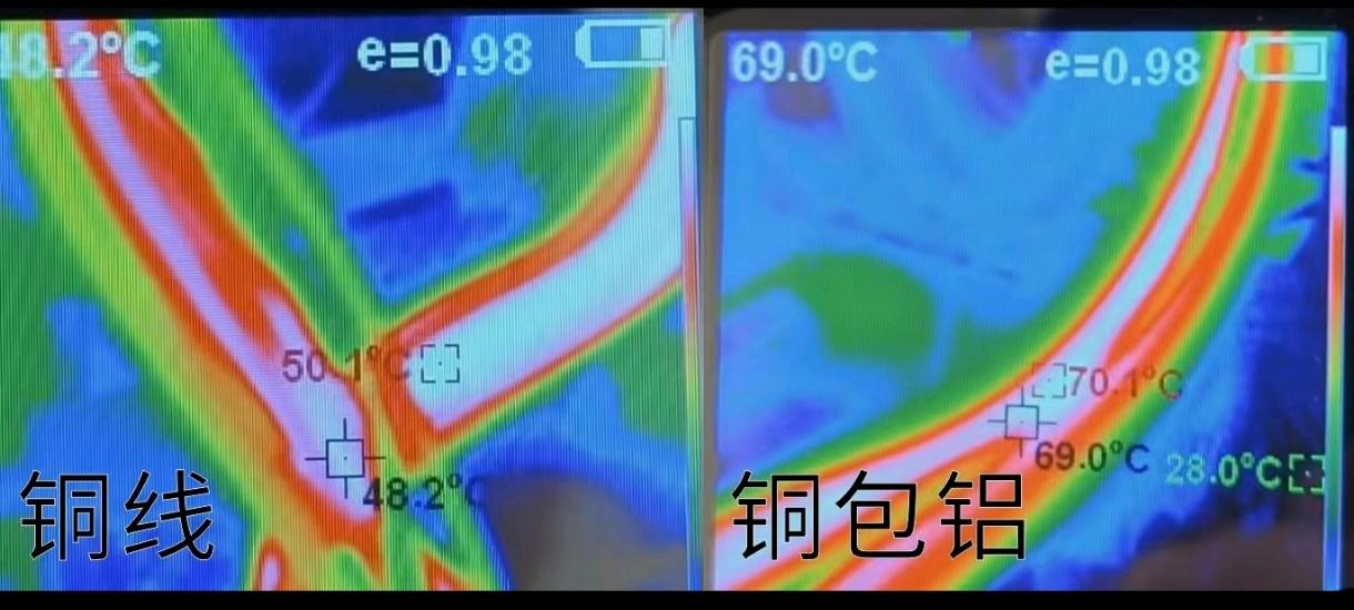 另外要注意线材用料的问题,现在有些电源厂,为了省成本,使用的不是纯铜电源线,而是铜包铝。铜包铝在高负载的时候,温度会比铜线高很多,50对比70℃!!