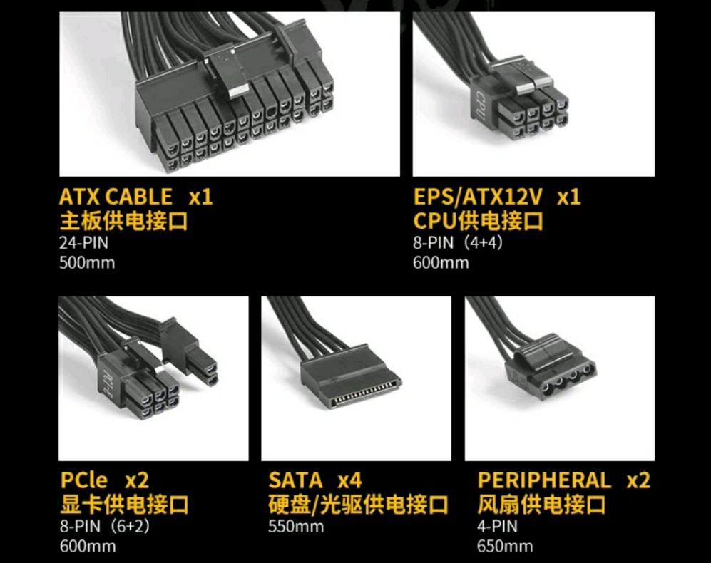 半模组:线材部分可以拆卸。半模组除了CPU和主板供电,其余可拆卸。理线会比非模组简单一些。