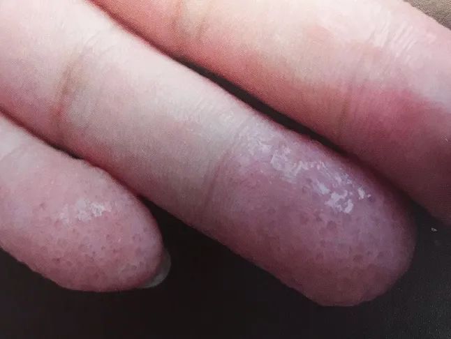 手上狂蜕皮,手指边缘长满小水泡,根本不敢接触别人怕传染给对方;