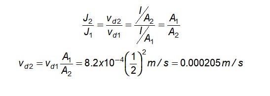 Para facilitar los cálculosen primer lugar se encuentra el valor de nque es el número de portadores de carga por unidad de volumendespués se determina la magnitud de J y finalmente se sustituye todo en la expresión anterior: