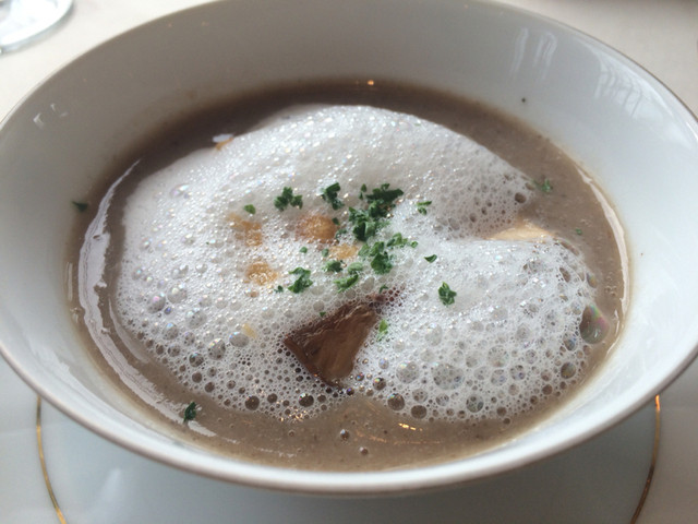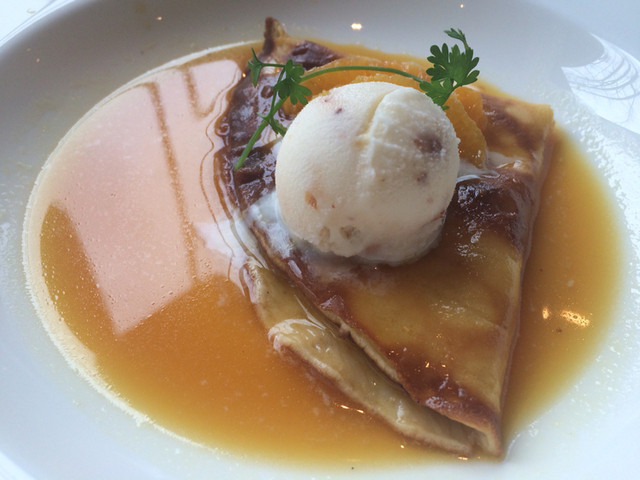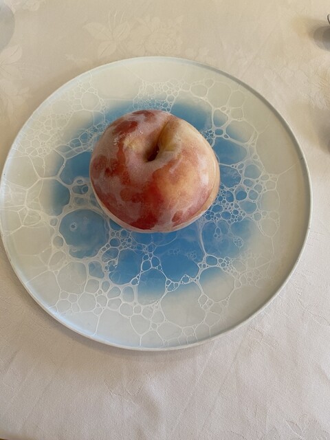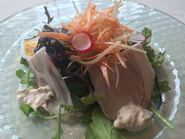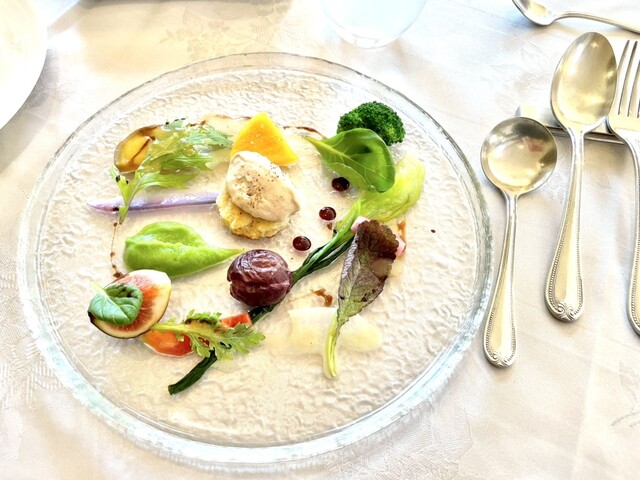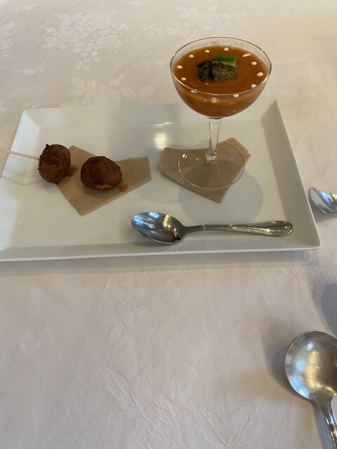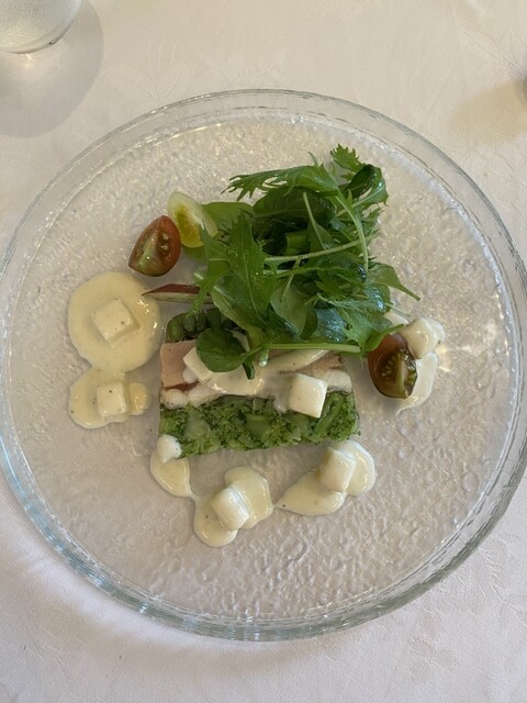 落ち着いた雰囲気の、静かなレストランです。前菜2種は気が利いてました。ランチのスープが冷凍した桃に入れられて運ばれたのには驚きました。程よい甘さと塩味の冷製スープは暑さを吹き飛ばし... 詳細を見る