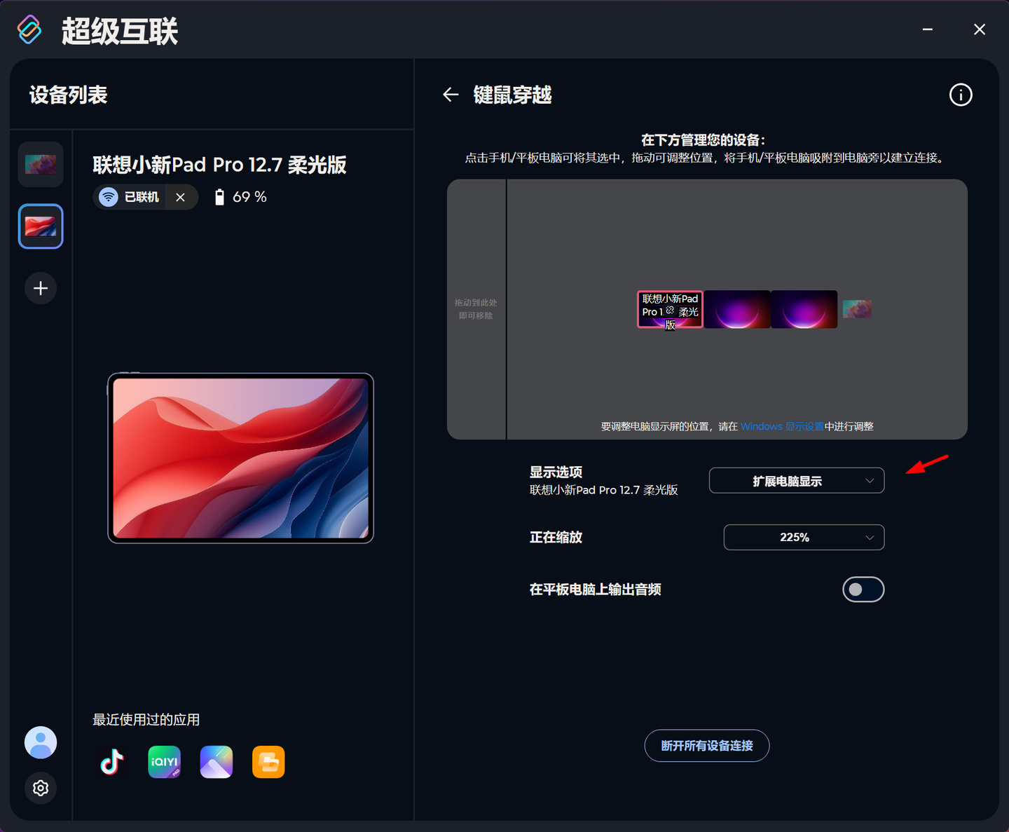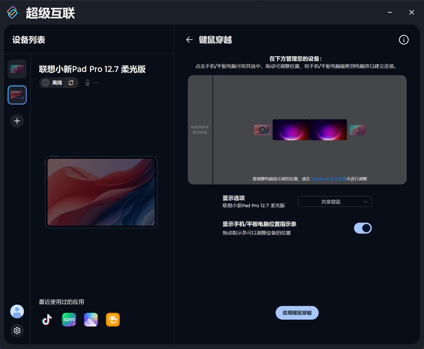 副屏平板:目前支持联想小新pad 12.7的2024/2025版本