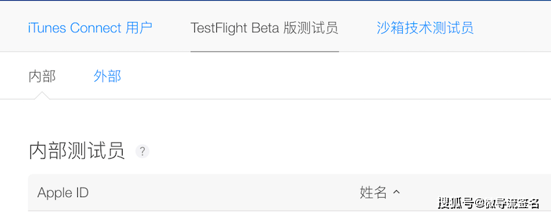 这时候顶部有三个菜单分别是iTunes Connect 用户 TestFlight Beta 版测试员 沙箱技术测试员,一般凭自觉,在都会认为在TestFlight Beta 版测试员菜单下的内部测试员添加测试账号较为合理,但是这里什么都做不了。