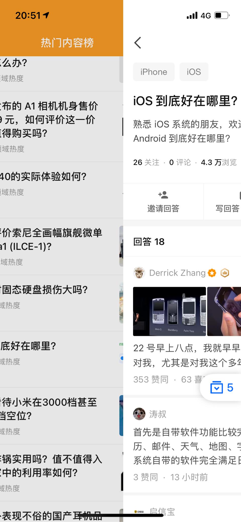 比如说,我玩知乎切换窗口的时候,手指可以这样滑动返回,整个过程完全跟手,随时都可以放弃返回的动作。我比较受不了那种点个返回键,或者在边缘滑动一下就抖机灵似的一下子跳回上一级菜单。