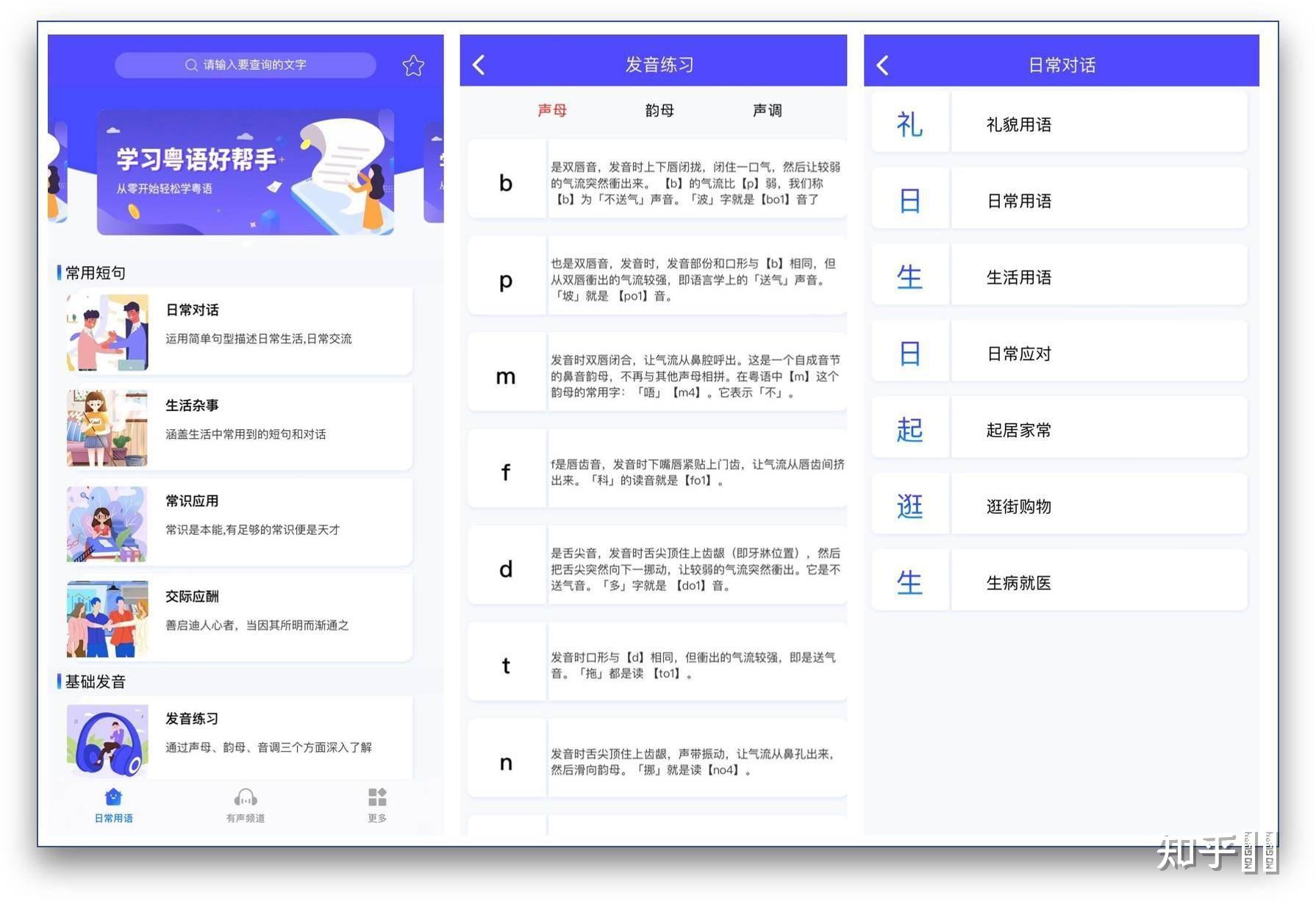 它完全免费,内容丰富,支持的功能包括:日常用语、有声频道,其中日常用语包括:常见短句、基础发音、模拟练习。