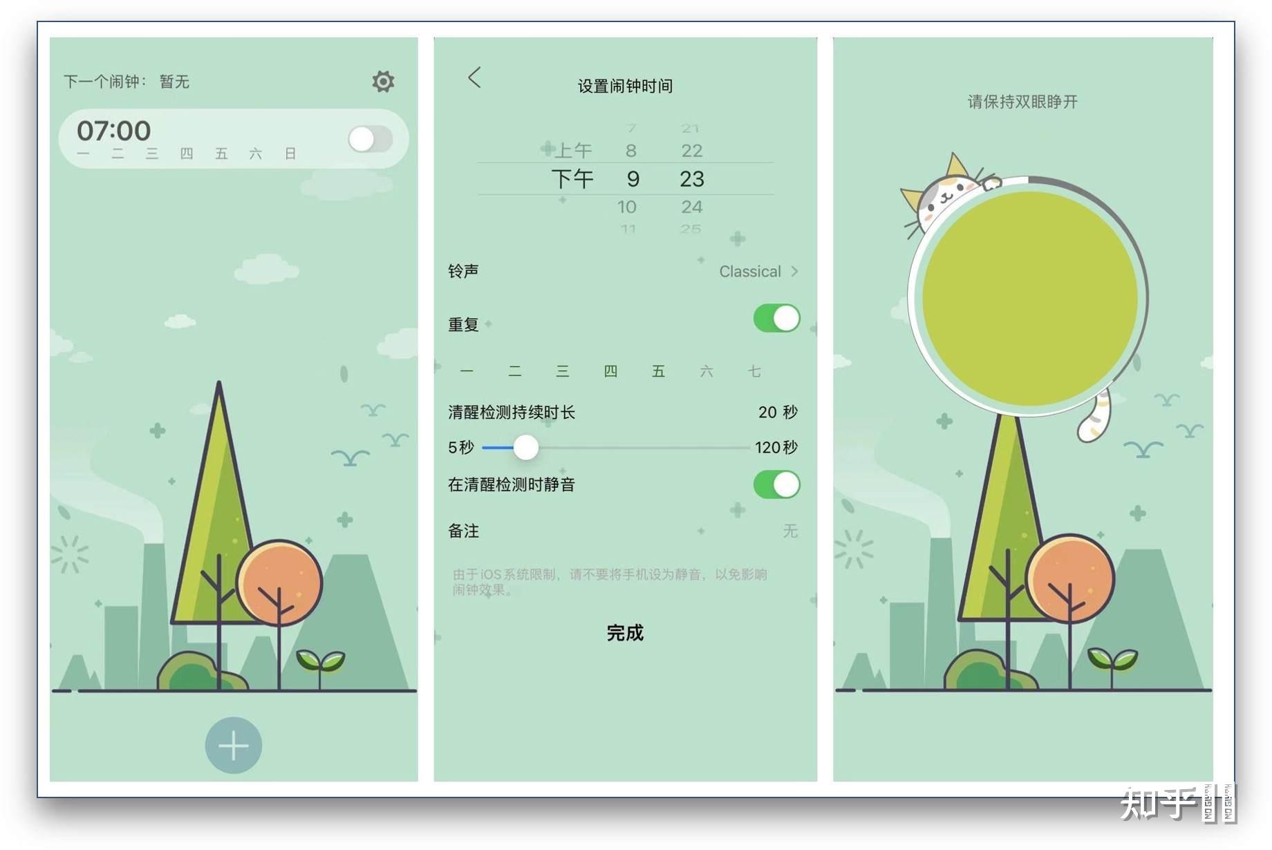 也就是说你可以自由设置一个睁眼时间,这个时间可以保证你彻底清醒,然后闹钟才会关闭。
