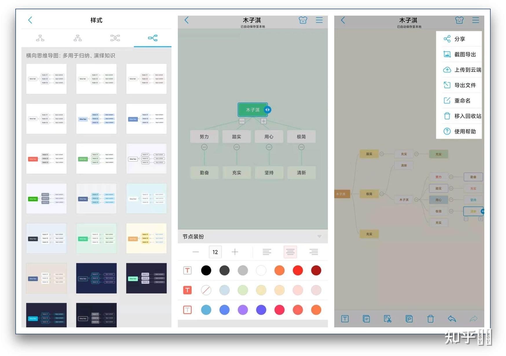 它支持多种样式一键切换功能,也就是说当你编辑好了一个思维导图的内容,点击切换其它思维导图样式,可以在内容不变的同时一键切换样式,这个功能非常实用。