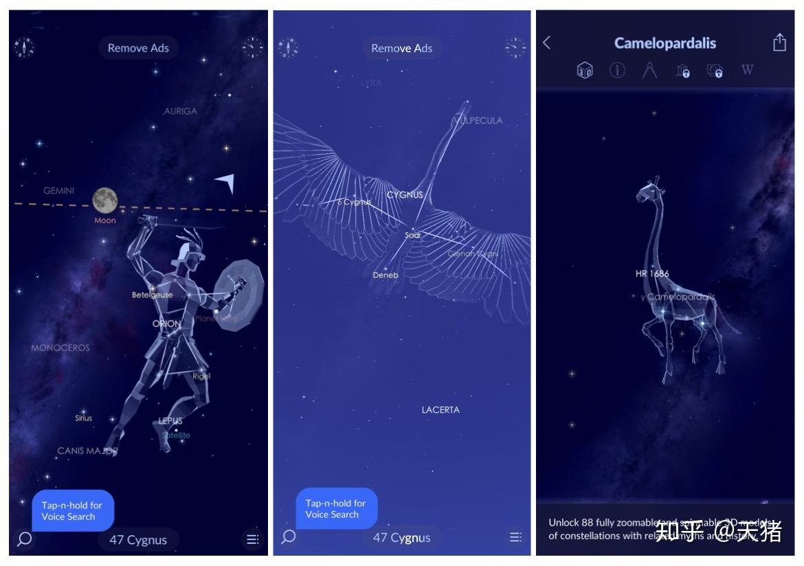 它通过手机内的全球定位系统来确定夜空中恒星、行星、星座、彗星、卫星、星团、星云和流星雨的位置,移动或旋转你的屏幕,它会根据位置而变换星空。