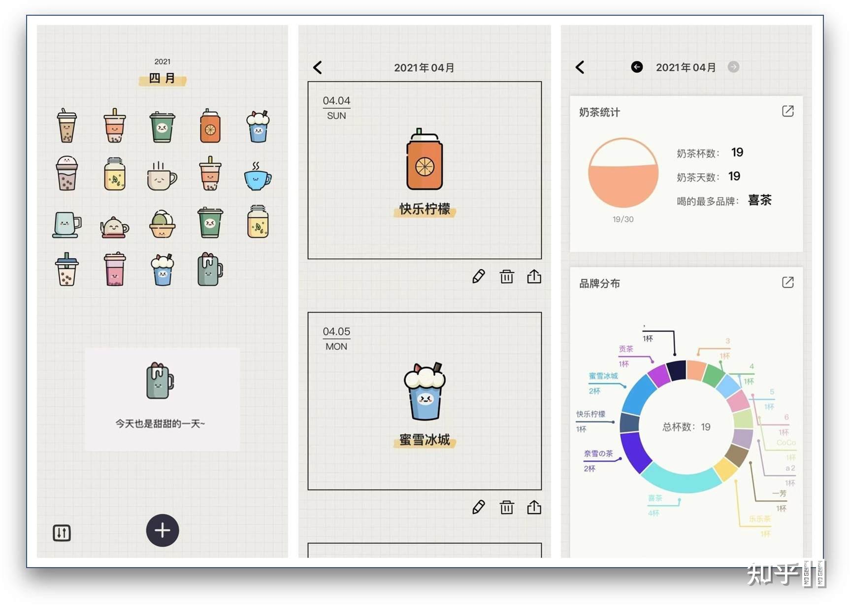 其中数据分析功能以形象生动的图表展示你的奶茶打卡记录。