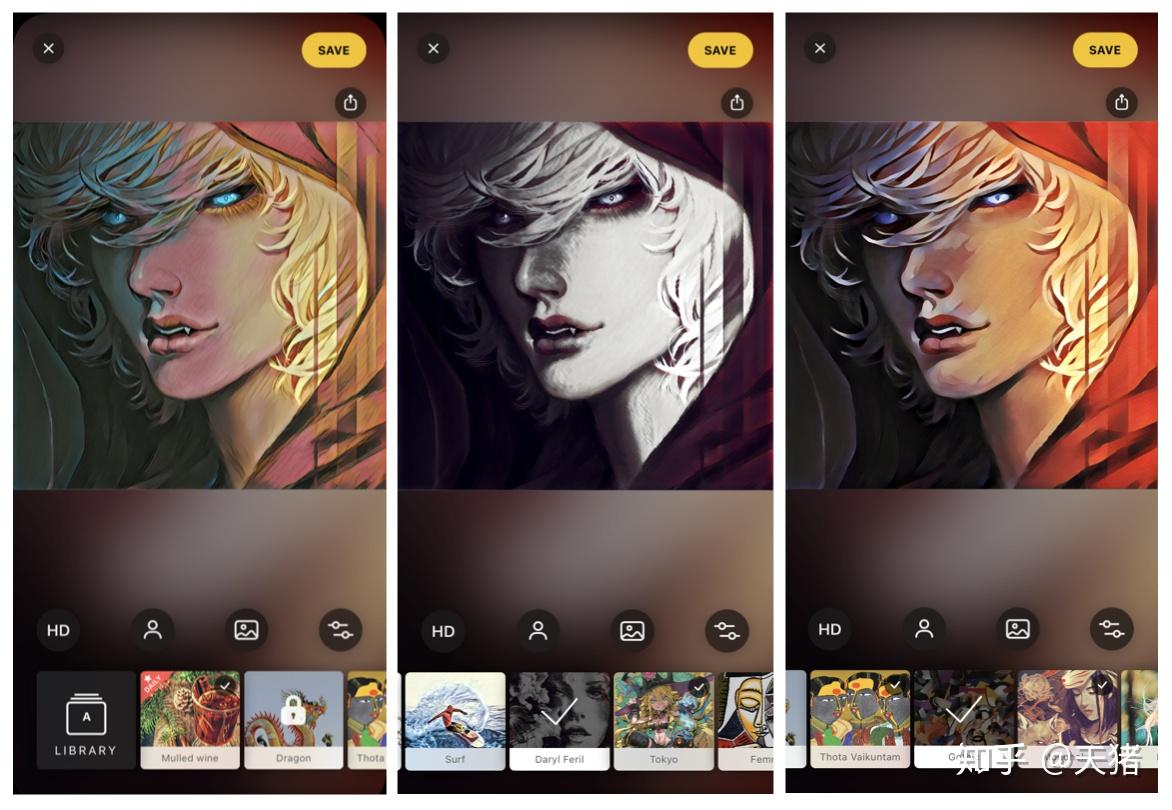 分享几个我最常用的免费滤镜:Gothic、Daryl Feril、Mosaic、Curly Hair,看着自己拍的照片变成手绘作品,感觉自己也成了画家!