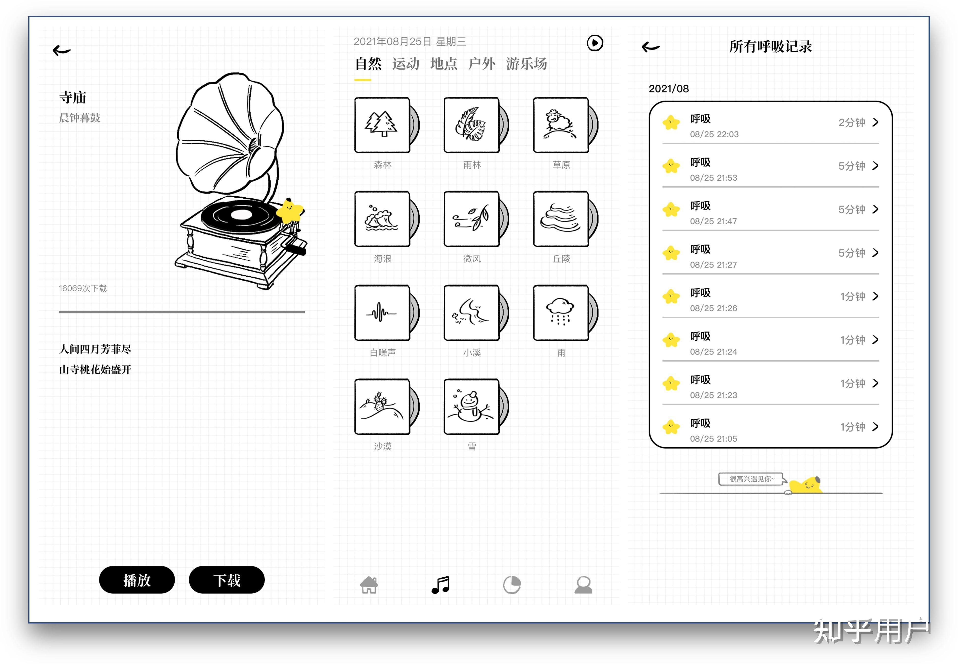 播放界面是一个安静的动态界面,配合唯美的白噪音,实际体验非常舒适。