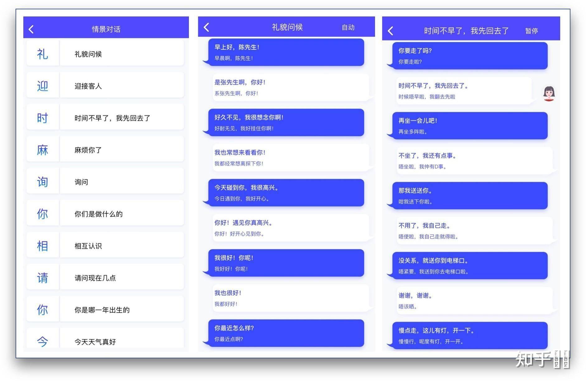 它的常见短句学习内容包括:日常对话、生活杂事、常识应用,交际应酬。