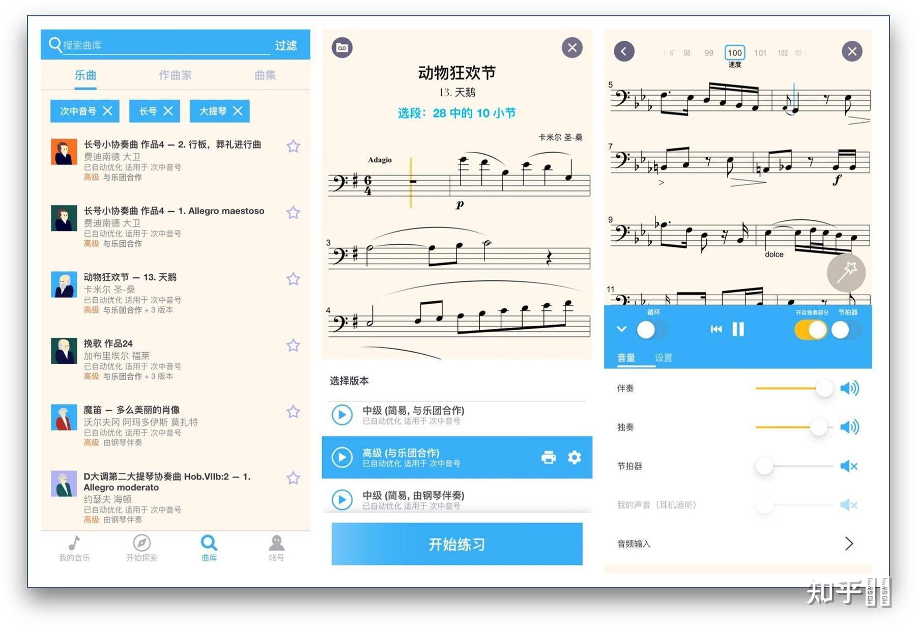 首先你找到需要练习的曲目,软件的开始探索版块推荐了很多高质量曲目,你也可以在软件的曲库版块搜索自己需要练习的曲目,这里支持搜索乐曲、作曲家、曲集。