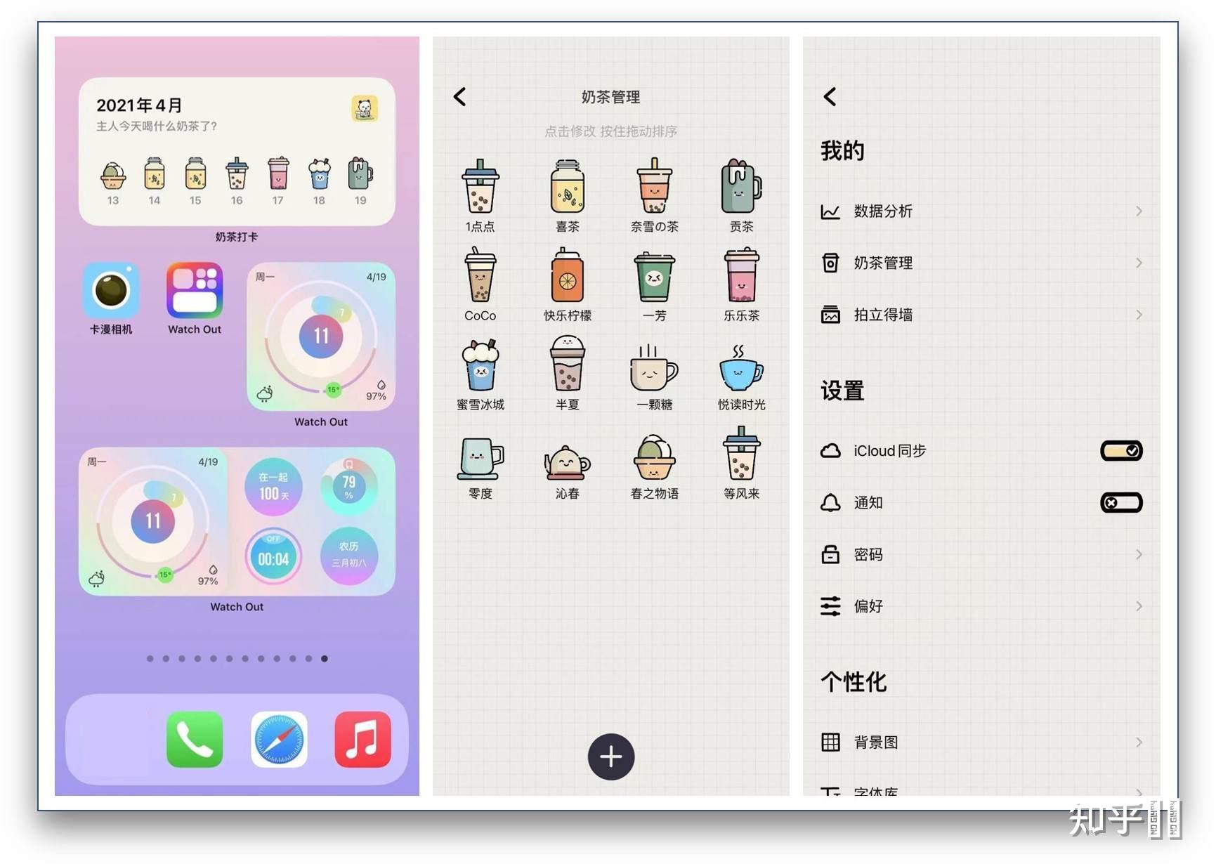 它支持数据分析功能,支持奶茶管理功能,支持拍立得墙功能,支持个性化设置功能,支持 iCloud 功能,支持密码锁功能。