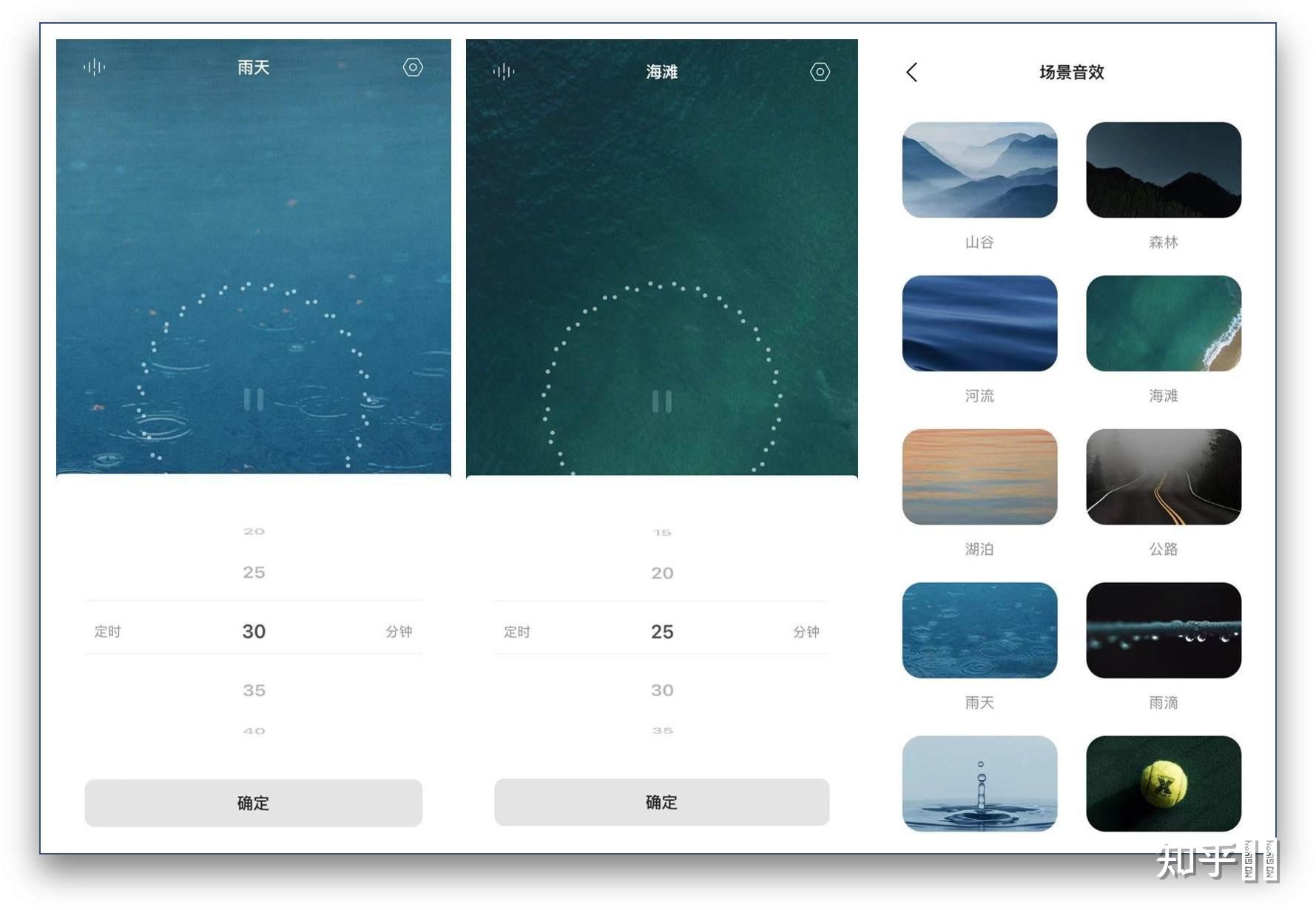 它支持 19 种非常唯美的场景音效,包括:山谷、森林、河流、海滩、湖泊、公路、雨天、雨滴、水滴、网球场、滴答时钟、乒乓球、键盘、铅笔、户外篝火、夜晚海滩、江上渔船、篱笆上的叶莺、星空。