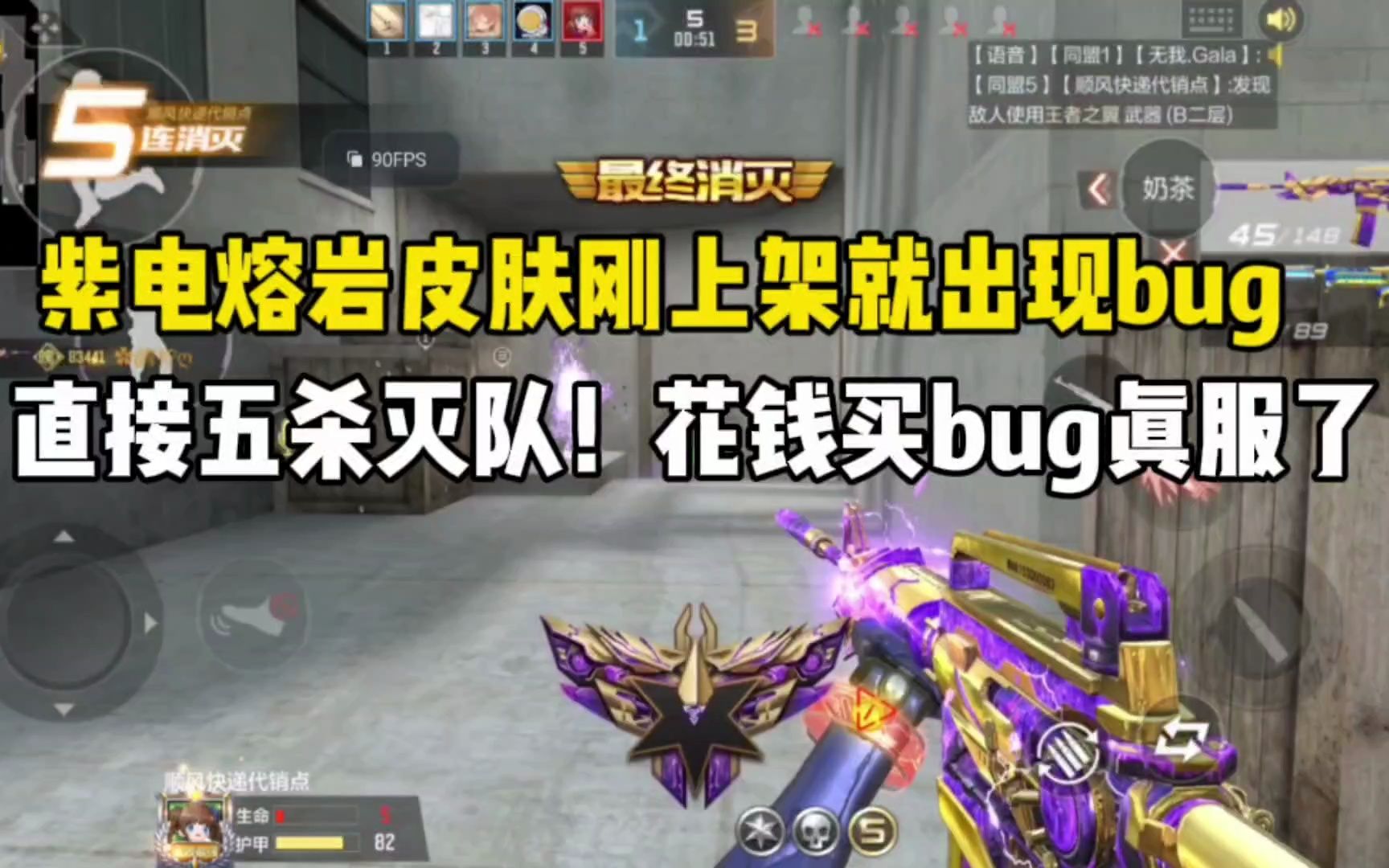 紫电熔岩皮肤刚上架就出现问题!直接五杀灭队花钱买问题真服了!