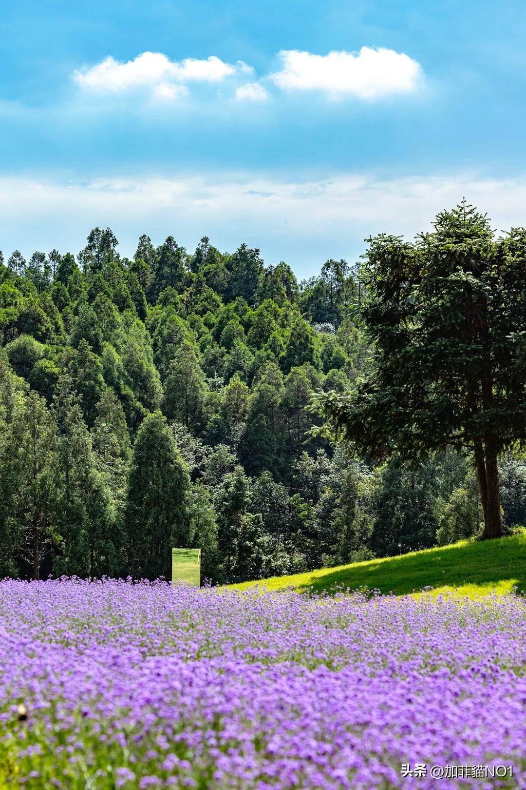 这里最特别的,便是它那“一半是森林,一半是花海”的独特格局——园区总面积约600亩,其中300多亩为柳杉林,剩下的大片面积全都留给了浪漫的马鞭草。