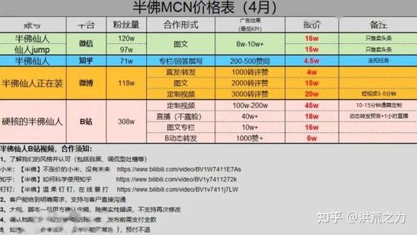 这应该是20年4月份的报价,如今半佛老师的粉丝已经从那时的308万涨到如今的544万,相信报价也上涨了,为计算方便这里继续沿用这份报价。