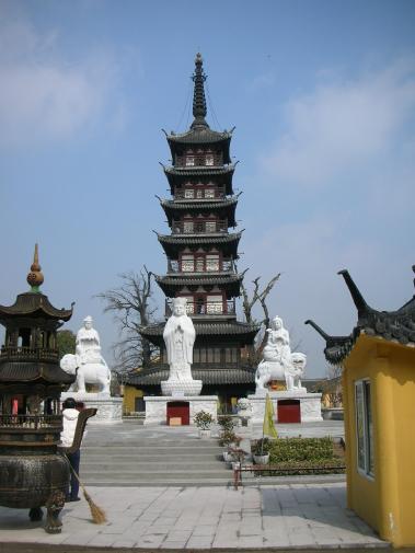 楞严塔(又称飞来塔),在宝云寺内西南隅(今大寺新村)。竖有石幢一座,幢身以青石雕凿制成,座基莲花纹,浮雕佛像,犹如仙子,姿势优美,中柱六角形,镌刻陀罗尼经,覆顶雕有莲花,高约丈许。建于唐咸通二年(861年),于1956年底因上半部倾斜危险而拆除,下半部又于"文化大革命"初期被拆除。后因保管不善,以致散失,仅存中柱竖于亭新中心小学内。