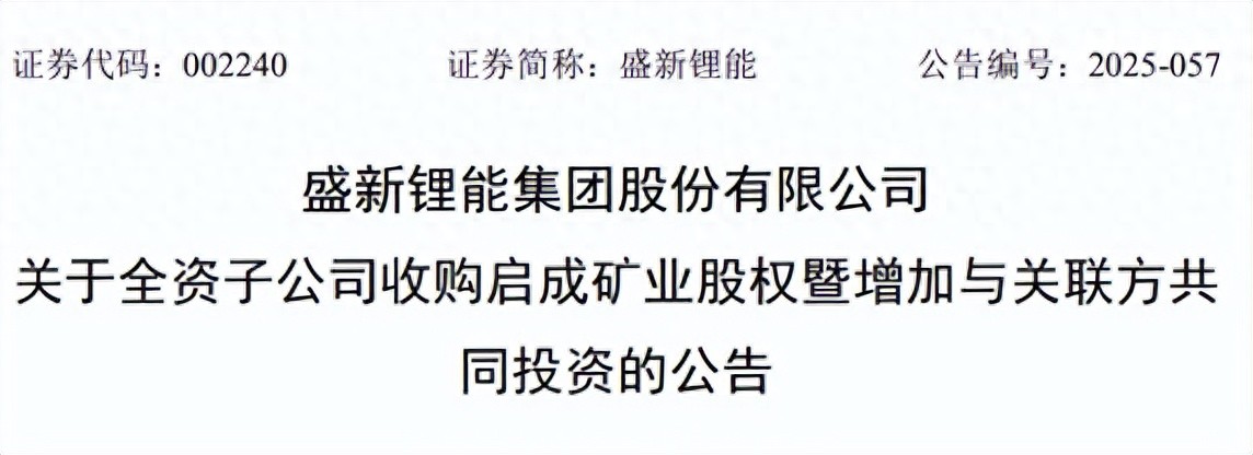 近日,盛新锂能公告称,拟通过全资子公司四川盛屯锂业有限公司(以下简称“盛屯锂业”)以现金14.56亿元收购四川启成矿业有限公司(以下简称“启成矿业”)21%股权。