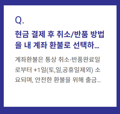 - 상담원 연결은 실시간 채팅 또는 전화상담 예약 기능 활용