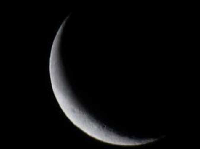 朔月过后,月球向东绕地球公转,从而使月球离开地球和太阳中间而向东边偏了一些。月球被太阳照亮的半个月面朝西,地球上可看到其中呈镰刀形的一部分,称为蛾眉月,这时是农历初三、四。蛾眉月日出后月出,日落后月落,与太阳同在天空,在明亮的天空中,故看不到月相。只有当太阳落山后的一段时间后能在西方天空看到蛾眉月。