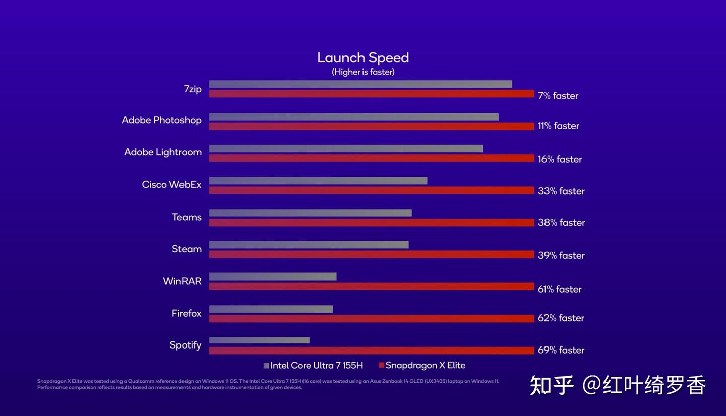 当然了,高通依然是惯例对标Intel的Ultra系列处理器。不过需要强调一句,这里的表现实际上是SNPE的综合性能表现,也就是综合了CPU、GPU、NPU等在一起的算力表现。