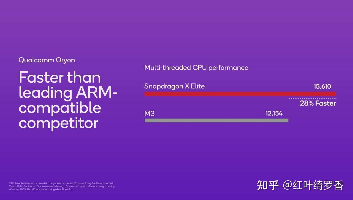 高通的X Elite对标苹果的M3,多核性能强28%左右。不过说实话,用X Elite顶配跑出比M3强28%的性能,数据上真的不算好看。毕竟,M3只是M3系列芯片的入门款。