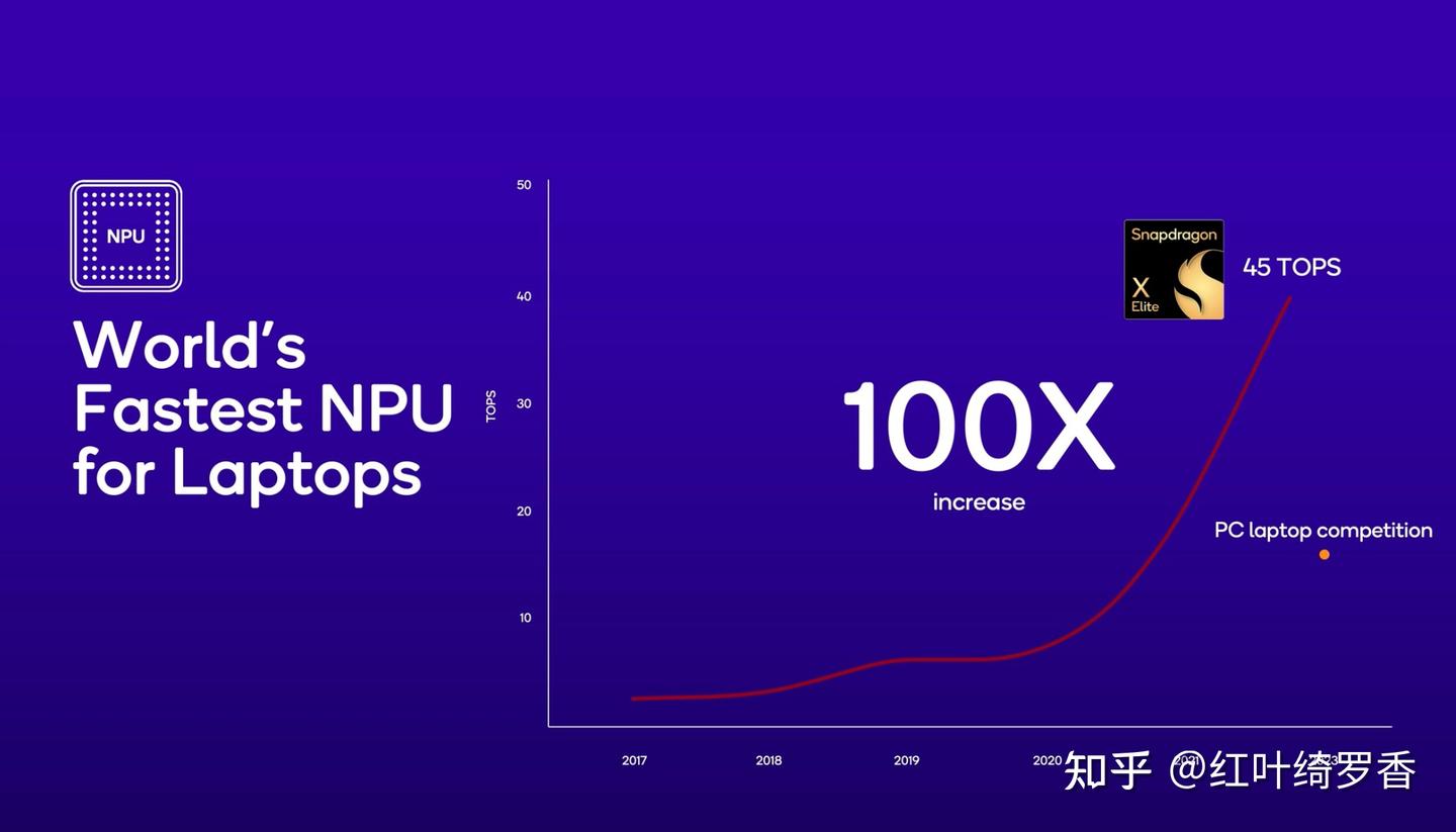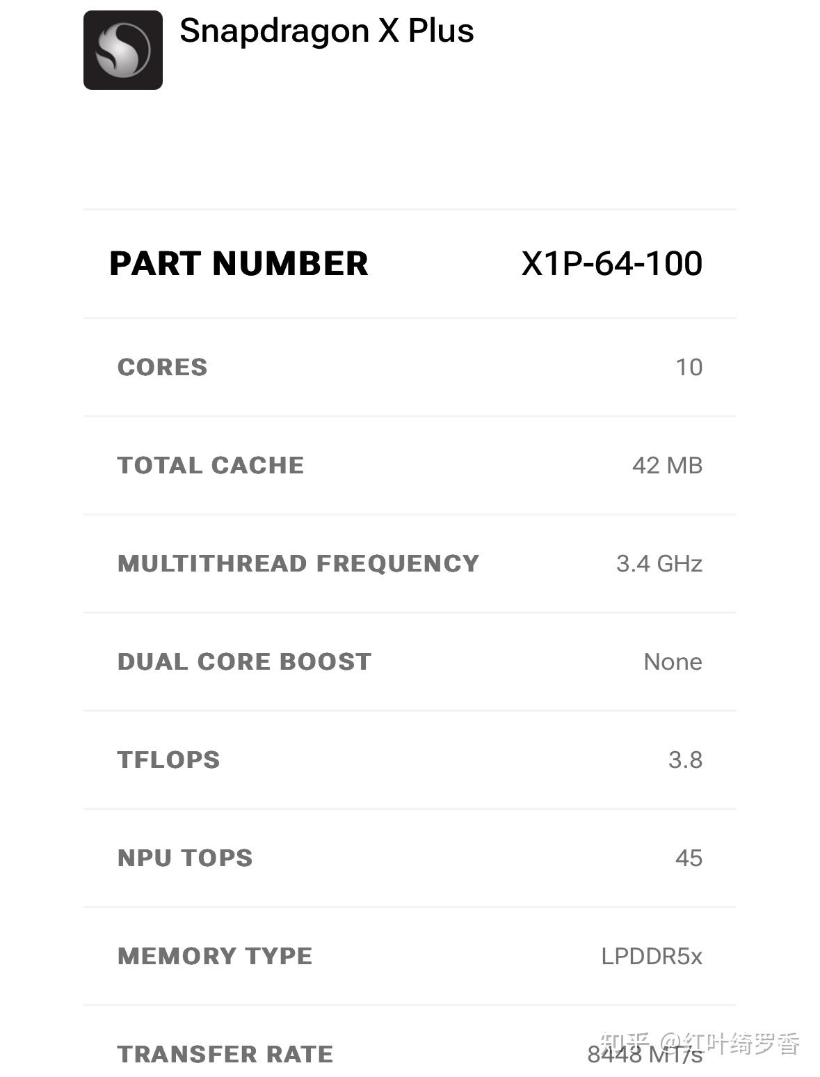 大胆猜测一下,高通大概率都是拿到了Apple Silicon M系列芯片的发布计划,X Elite在M3系列芯片发布前几天发布,所以可以对标一下M2系列芯片。笔记本新品发布前带来了X Plus,又是在M4芯片发布前几天,所以也就有了高通的这个对比图,NPU算力是竞品的两倍多。毕竟M3只有18 TOPS,而X Elite和X Plus都是45 TOPS。但是换成M4的38 TOPS,对比就没有那么好看了!