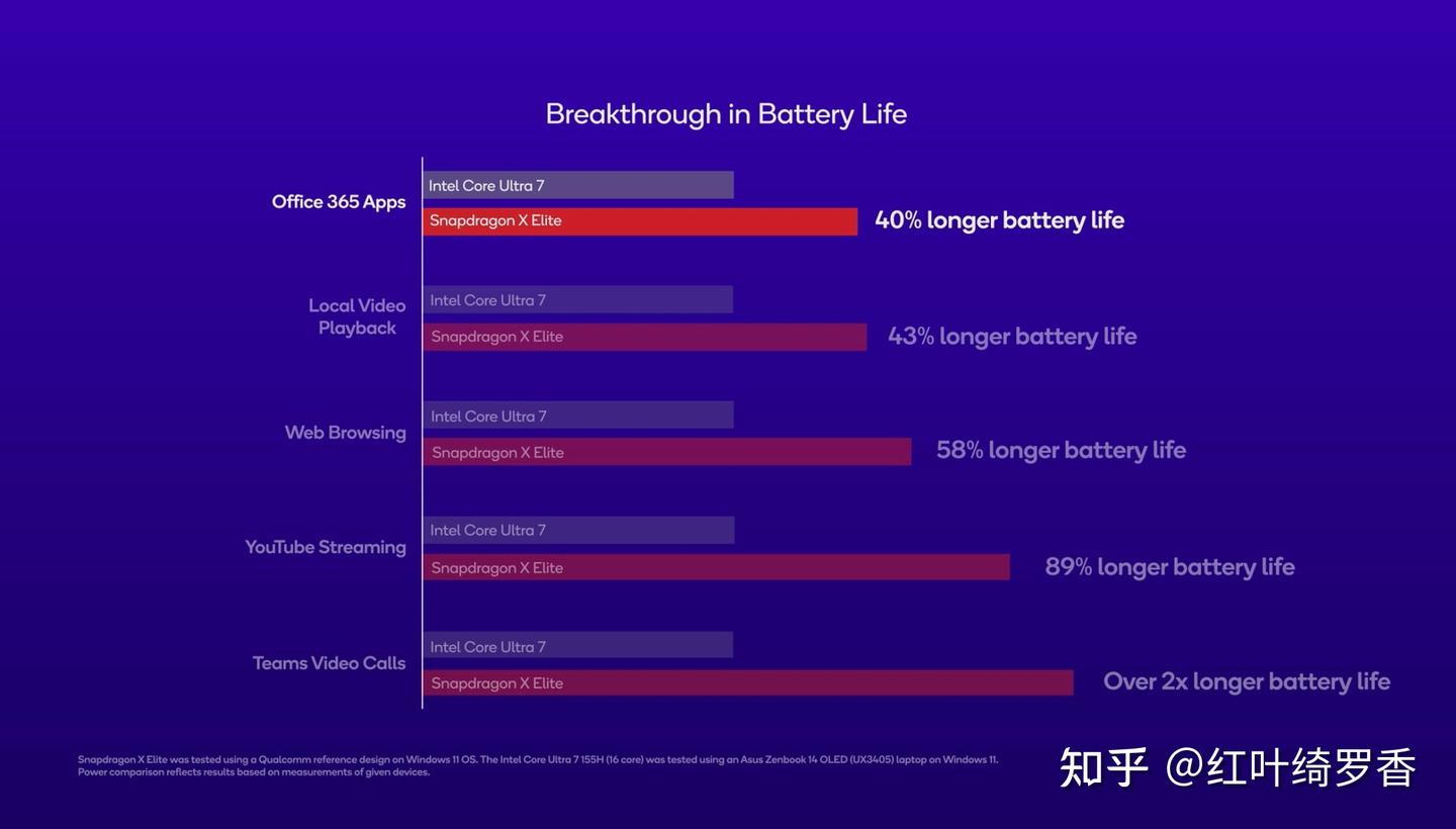 而且更关键的是,ARM架构的高能效才是高通X Elite绝对的优势所在。做好了,那就是Windows On ARM的笔记本也可以有着媲美MacBook 10小时以上真实使用场景下的续航能力,不过这一点高通目前还没有做到。以全部运行原生软件的情况来看,X Elite笔记本的续航基本介于Intel/AMD处理器笔记本和MacBook中间的位置。