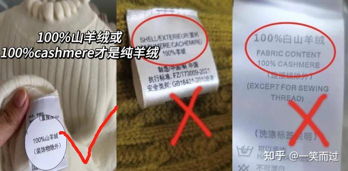 只要是【100%山羊绒】并且满足以上执行标准和安全类别的基本都没什么问题。【100%羊绒、100%精品羊绒、100%抗起球羊绒、100%绵羊绒、100%澳洲羊绒】这些玩文字游戏的标记都不要买!