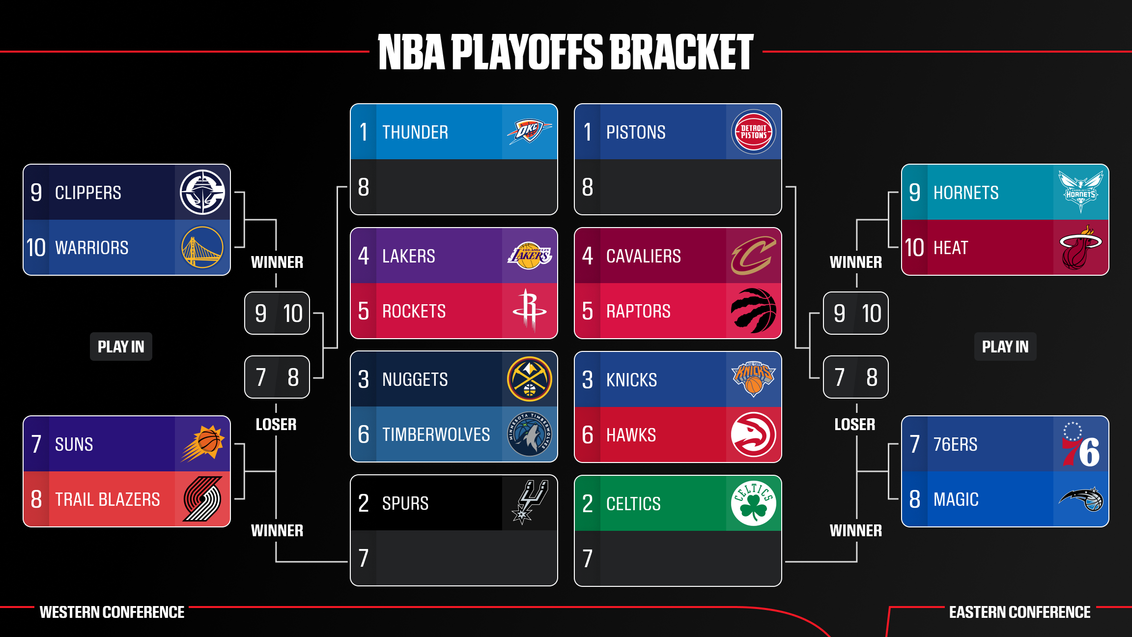The Eastern and Western Conference playoff brackets have been set after Sunday's games.