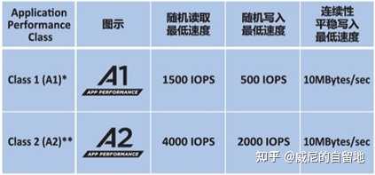 应用等级,代表了运行app的能力,等级越高速度越快,速度达不到class1的不允许标注等级,意思是原来的红卡随机读写速度肯定有一个比1500、500IOPS低。