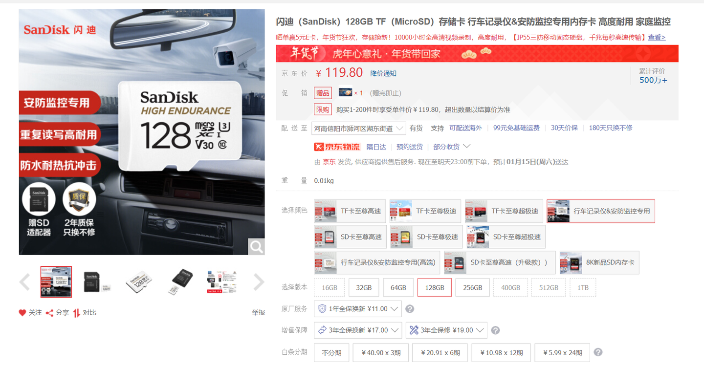 ▲比如同为闪迪品牌,普通用途的内存卡可以终身质保,而行车记录仪专用的内存卡却只有2年保修。