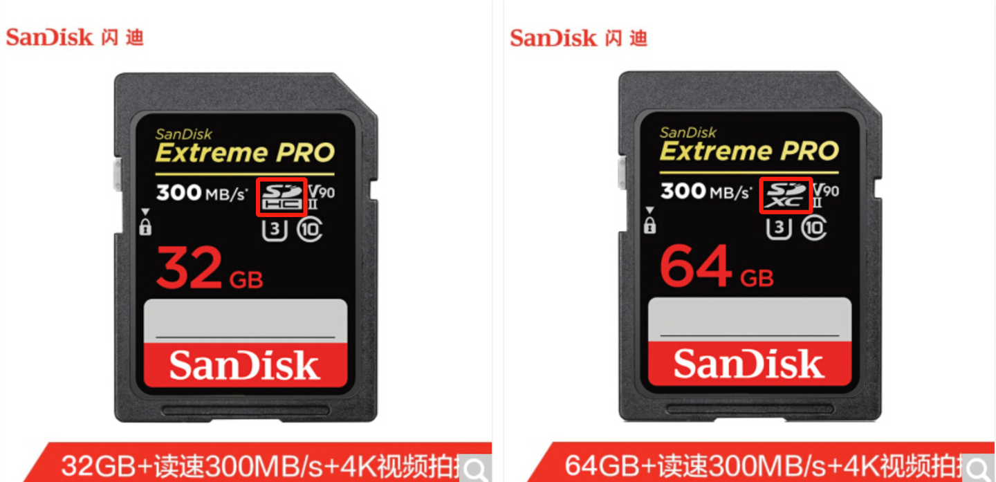 ▲比如同样是闪迪的至尊超极速卡,32GB的便是SDHC卡,而64GB的则被称作了SDXC卡,只不过大家都习惯将其统称为SD卡了
